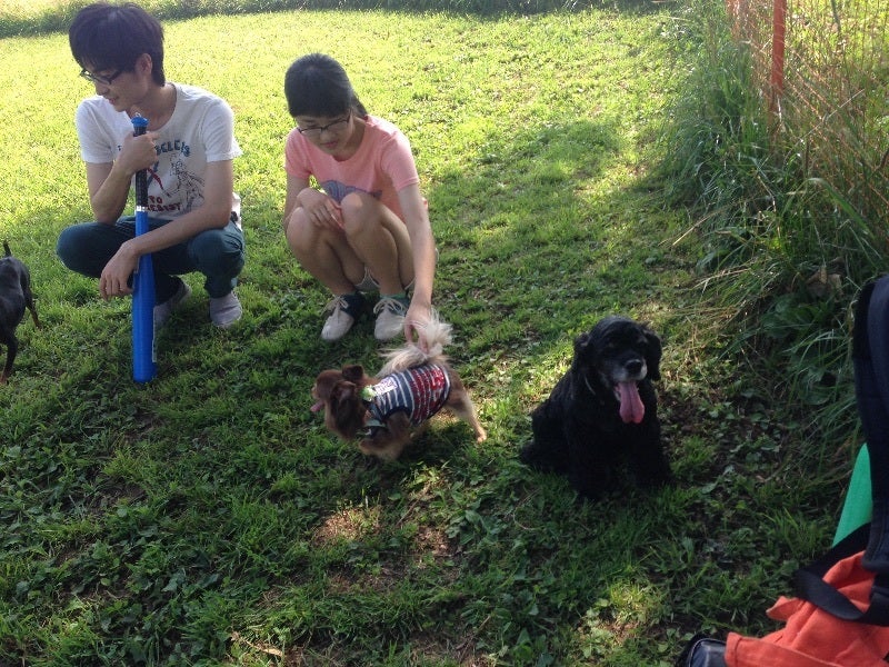 朝早くがこそこそと、元気な2匹(*^^*)朝からウノ??元気なワンコドッグランて、大満足みんなは、野球大会暑い〜〜(^^;;そして、流し蕎麦 笑笑以外と好評で、売り切れ御礼でした(^◇^)水は冷たくて最高(^◇^)