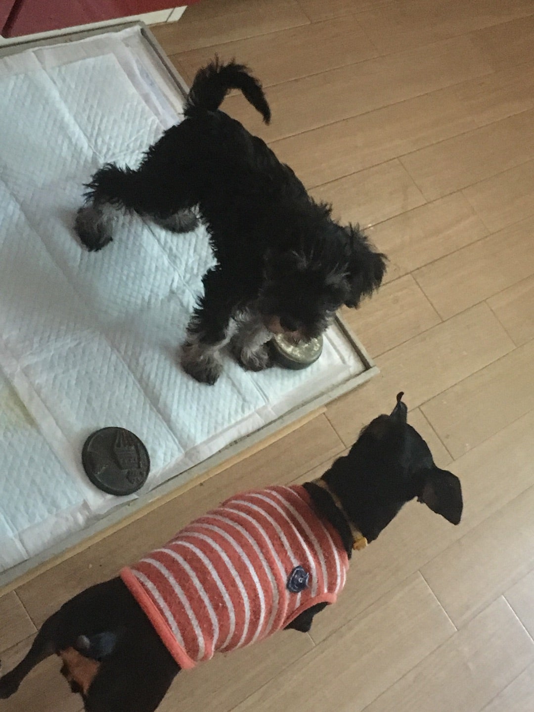 全く犬に興味のないピンシャーが、追い詰めてます💦💦💦