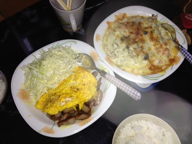 夜は お手製 グラタンと オムレツを ヾ(@^(∞)^@)ノ