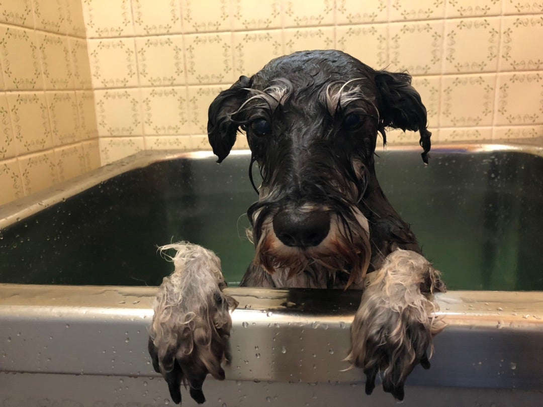 お風呂が苦手な、シュナちゃんは、早く出してーって。。