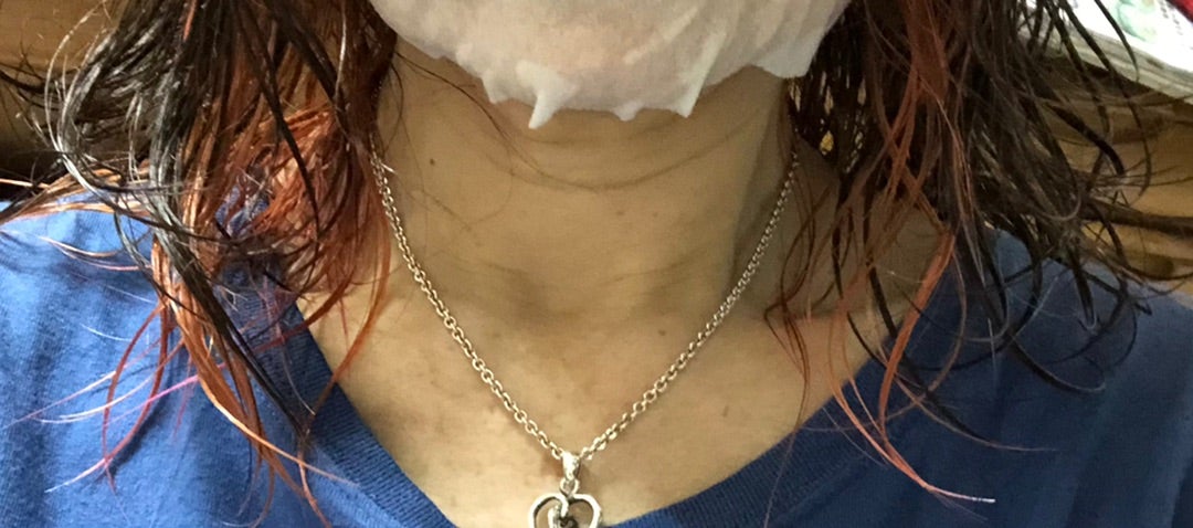 インナーカラー、娘に手伝ってもらって、ピンクのはずが😊