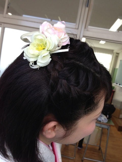お客様の、先生の髪とメイクをヾ(@⌒ー⌒@)ノ七時に、完成したよ💓