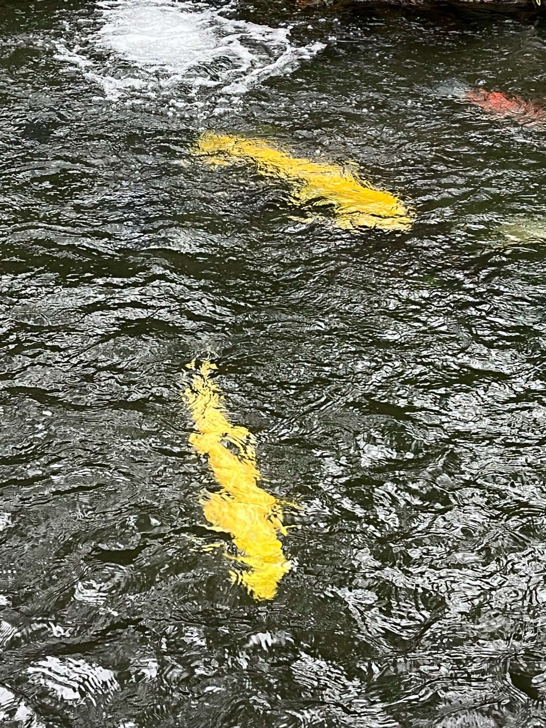 大きな鯉も、雨が☔凄いので、水の中💦
