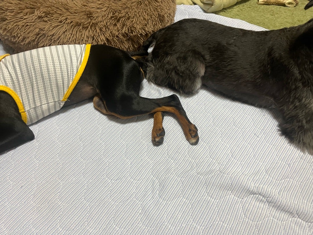 わんこたちも、エアコンの風が来るところにベッタリ
