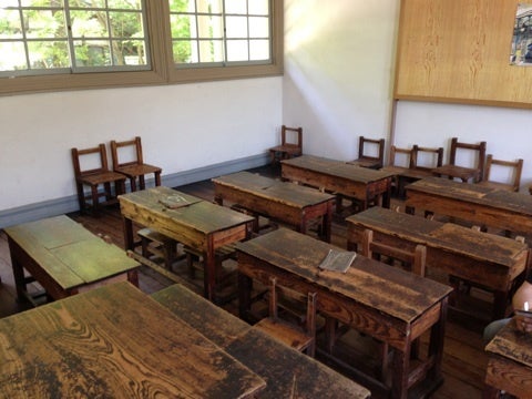 この机、今の幼稚園の、椅子より低くて、ビックリだわ