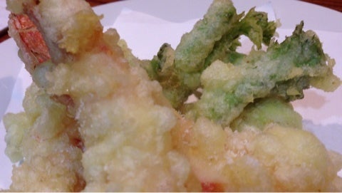めっちゃでっかいエビの天ぷらふきのとうも、美味しい