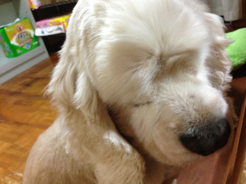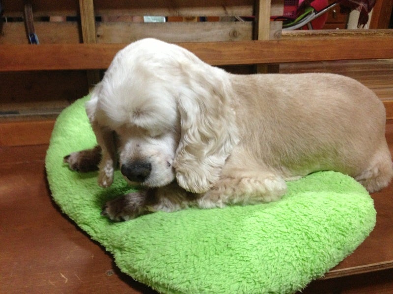 おメメがないので、ずっと寝てるみたいなおじいちゃんワンコ