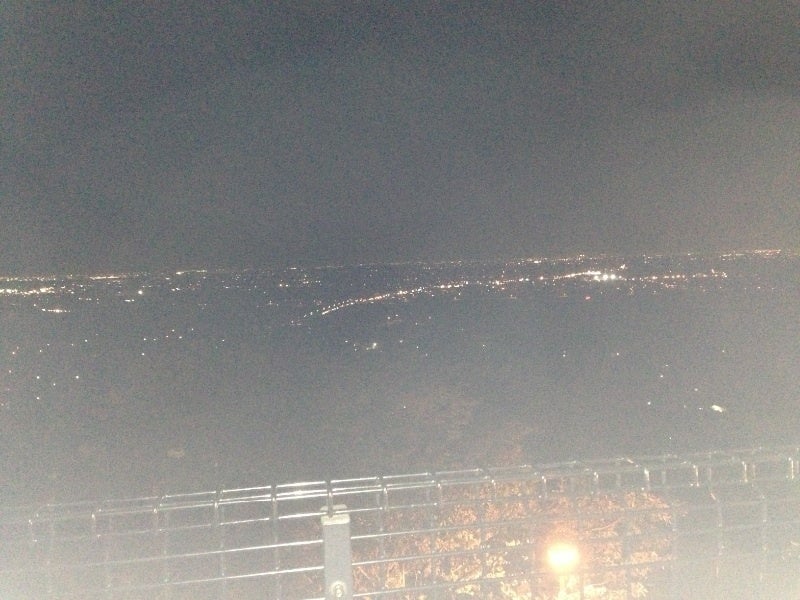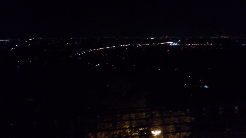 お風呂の中から夜景が見えて