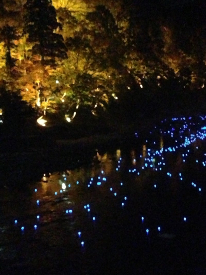 青いLEDの灯りが川をどんどんくだってくる。