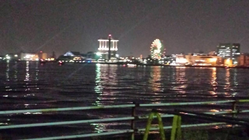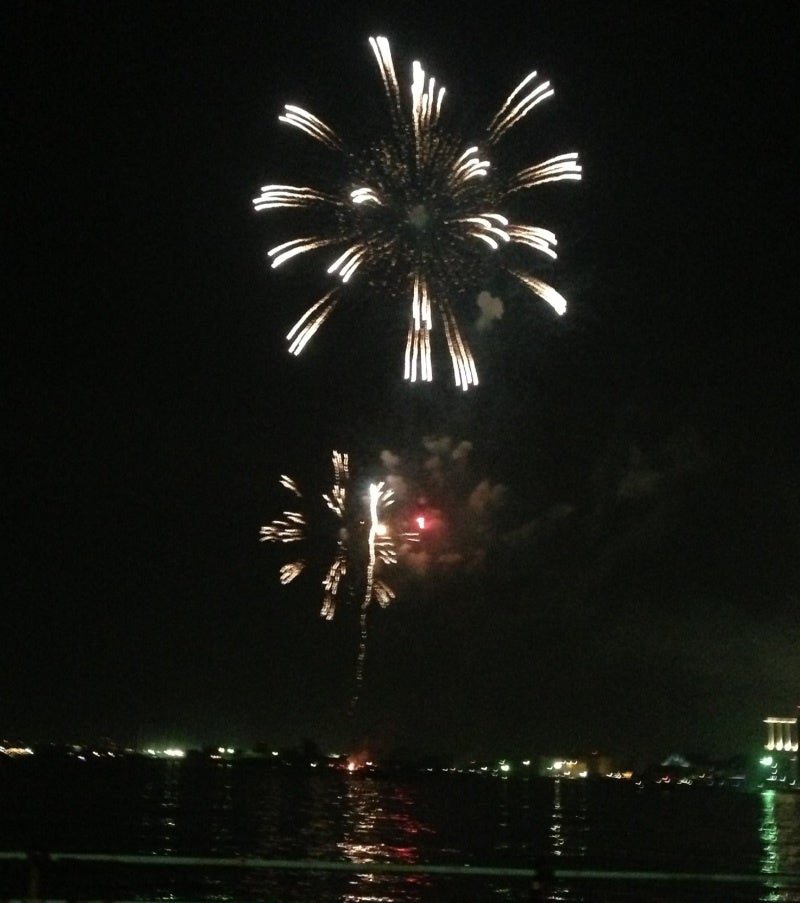 クリスマスイブに港の花火